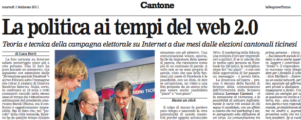 A quelques pas de la fin de la campagne électorale tessinoise, le journaliste Luca Berti m’a interviewé sur la question de l’utilisation des médias sociaux par les politiciens.